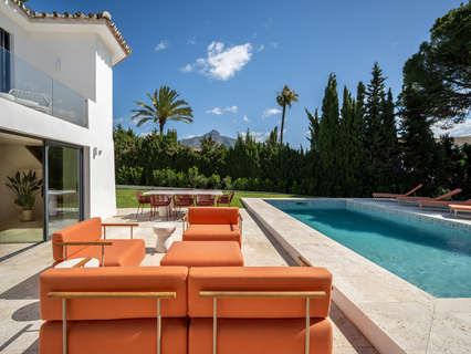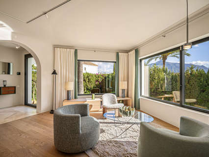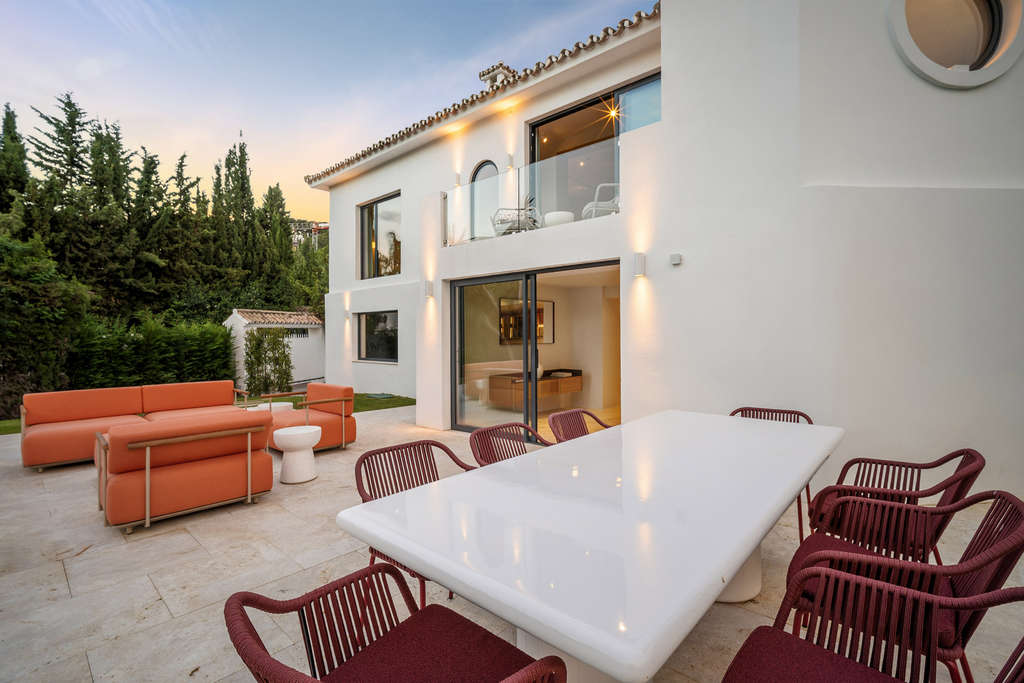En el corazón de Nueva Andalucía se encuentra una villa mediterránea que combina a la perfección el encanto contemporáneo con la tranquilidad del entorno natural. Rodeada de vegetación exuberante y con vistas privilegiadas a la montaña de La Concha, esta propiedad ofrece una atmósfera de privacidad, serenidad y exclusividad. Su ubicación estratégica permite disfrutar de la paz de un entorno residencial de lujo con la comodidad de tener campos de golf, colegios internacionales, tiendas y la ciudad a pocos minutos.EXTERIORESEl jardín, meticulosamente diseñado, envuelve la villa con un aire de intimidad y frescura, donde cada rincón invita a relajarse. La piscina privada al aire libre se convierte en el centro de la vida exterior, acompañada por zonas de descanso y terrazas perfectas para disfrutar del clima mediterráneo durante todo el año. El acceso privado conduce a un aparcamiento cubierto que garantiza comodidad y seguridad, completando un espacio exterior concebido para el disfrute y el bienestar.INTERIORESLos espacios interiores destacan por su calidez y elegancia. Los detalles en madera y los suelos en mármol y parquet refuerzan la sensación de sofisticación, mientras que la distribución abierta conecta la cocina de última generación con el comedor y el salón, generando un ambiente acogedor y funcional. Grandes ventanales inundan de luz natural cada estancia, enmarcando las vistas al jardín y creando una continuidad con el entorno. La suite principal es un auténtico refugio privado, con un baño de diseño exclusivo pensado para el máximo confort.