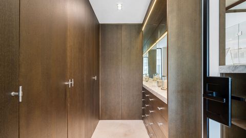 Descending into the lower level, a world of wellness and entertainment awaits. A sleek and stylish bar area invites evenings of socializing, while an intimate TV room is perfect for movie nights. The home’s private spa area, complete with a sauna, steam room with a Himalayan salt wall, and a dedicated massage room, offers the ultimate space for relaxation and rejuvenation. Fitness enthusiasts will appreciate the treadmill and wellness-focused design, ensuring a holistic approach to health and well-being.