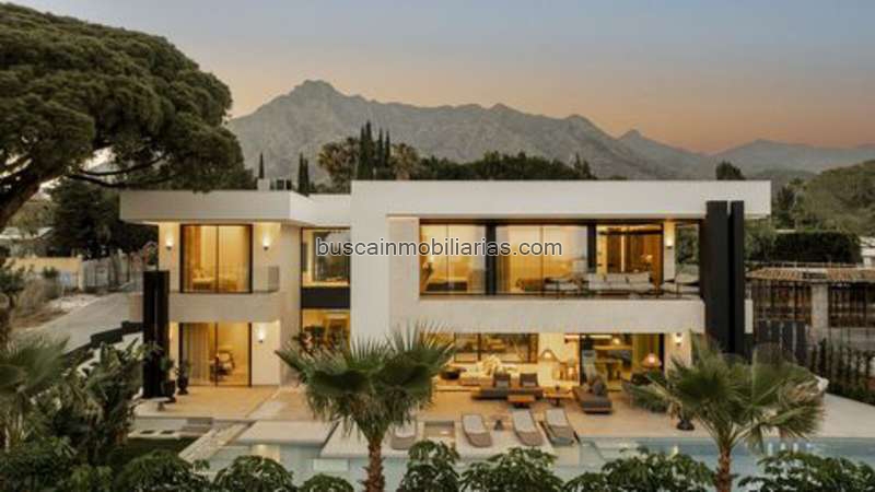 this sophisticated newly built villa occupies a 1.050 m² plot surrounded by palm trees and pines. Its south-facing orientation ensures abundant natural