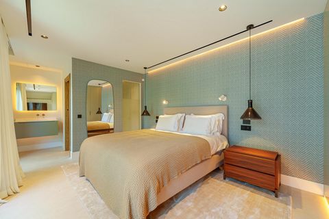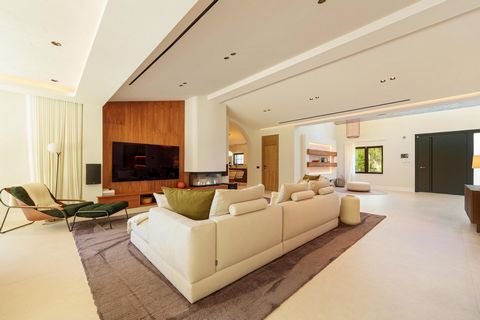 This exceptional single-level villa offers contemporary Mediterranean living just minutes from Puerto Banús. Set on a private, generous plot, the home features five spacious bedrooms, a striking double-height entrance, and expansive open-plan interiors with clean lines and floor-to-ceiling windows.