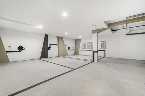 Additional features include a private garage accommodating three cars, hot and cold air conditioning throughout, built-in wardrobes, an alarm system, security cameras, and an elevator connecting all levels for convenience.