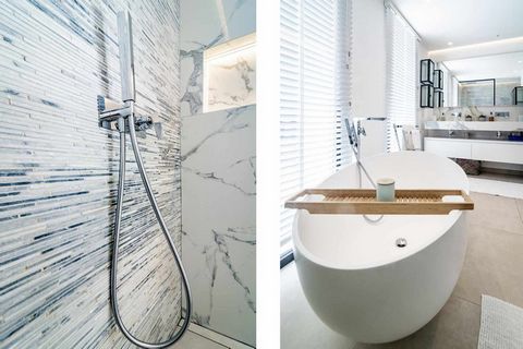 This stunning villa in the heart of Nueva Andalucia is equipped with a Sonos sound system throughout the property and garden, underfloor heating on the ground floor and in all bathrooms, as well as solar panels supplying energy for the pool heater and water boiler.