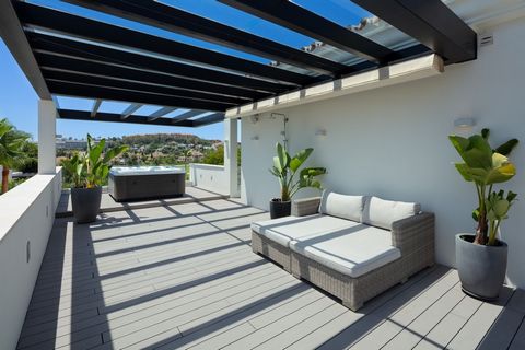 While embracing a contemporary design, this property pays homage to the traditional Andalusian-style villas of Southern Spain with its white exteriors and roof tiles, complemented by black beams adorning the terraces.
