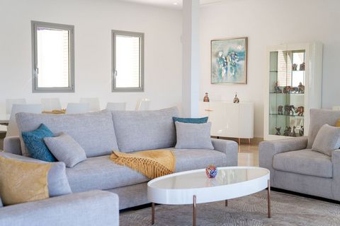 It is located in a natural environment, surrounded by golf and mountain, providing nice open views to those, panoramic sea view from the solarium and good sea view from some areas of the house.