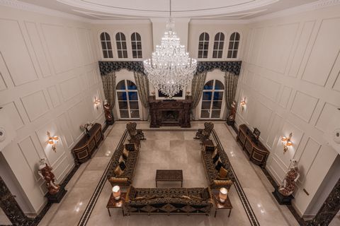 This stunning three-floor estate is located in the prestigious Sierra Blanca community on the Costa del Sol. Built just ten years ago, it blends neoclassical architecture with modern luxury. The grand foyer, with its 9-meter-high ceiling and elegant chandeliers, sets the tone for the home’s sophisticated design.