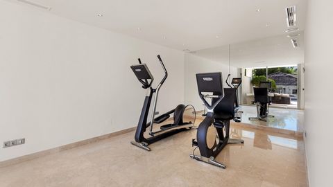 Ground floor: Spacious entrance hall leading to a large, fully fitted kitchen and dining room with access to a dining terrace and views to Las Brisas golf. Adjoining utility room with stairs to staff apartment in the basement. Spacious living room with fireplace and access to a spacious terrace overlooking the garden, pool and las brisas golf. Master bedroom with separate dressing room and bathroom. A glass lift from the ground floor connects to the upper and lower floors.