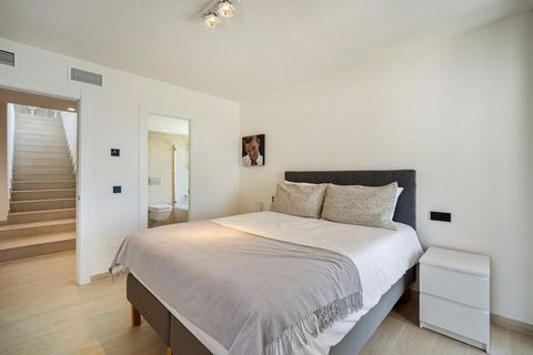 La suite principal se encuentra en la planta superior, ofreciendo máxima privacidad, un amplio vestidor y vistas serenas al Mediterráneo. La planta inferior incluye un acogedor salón perfecto como espacio de entretenimiento, sala de TV o para el descanso familiar.