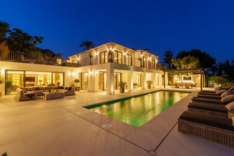 Presentamos Villa Rocío, una impresionante residencia de estilo andaluz completamente renovada en 2025, ubicada en la prestigiosa zona de Rocío de Nagüeles, en la Milla de Oro de Marbella. Situada en una parcela orientada al sur de 1.965 m² bajo La Concha, la villa ofrece espectaculares vistas al Mediterráneo y abundante luz natural en sus 734 m² de espacio habitable.