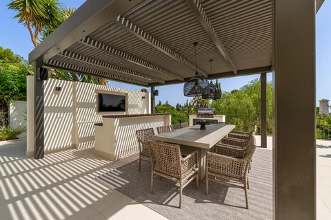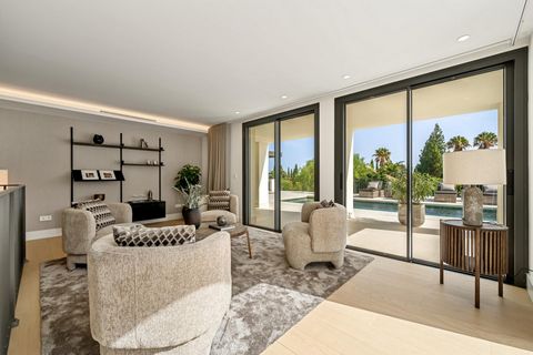 En el exterior, 456 m² de terrazas rodean una gran piscina de agua salada, solárium, zona de comedor al aire libre y jardines paisajísticos. Un garaje cubierto con acceso privado ofrece aparcamiento para seis vehículos. Lista para entrar a vivir, orientada al sur y a pocos minutos de clubes de playa, campos de golf y las mejores comodidades de Marbella, Villa Rocío ofrece lujo contemporáneo en una de las ubicaciones más codiciadas de la costa.