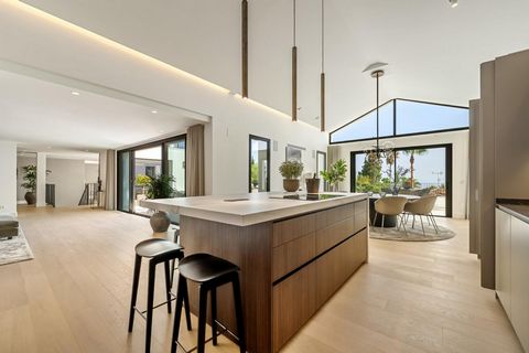 La planta principal cuenta con un amplio salón y comedor de concepto abierto, integrados a la perfección con una cocina de diseño impactante con isla central. Cinco espaciosas suites ofrecen alojamiento de lujo, incluyendo la suite principal con terraza privada y vestidor. La planta baja está diseñada para el entretenimiento, con salón con bar, bodega de vino acristalada, billar, dos aseos de invitados y amplio espacio de almacenamiento.