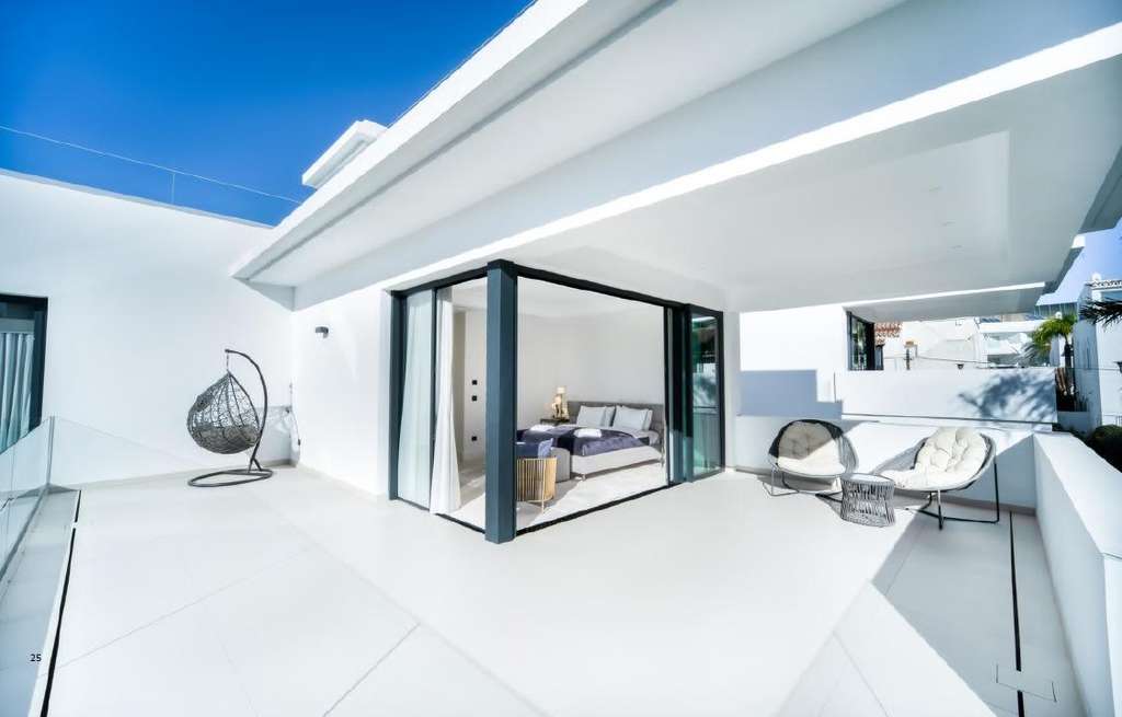 Esta impresionante villa de nueva construcción está situada en una de las zonas residenciales más prestigiosas y solicitadas de Marbella, la Milla de Oro, en la segura y tranquila urbanización Río Verde. A sólo 100 metros de la playa y a un corto paseo de 3 minutos del exclusivo Puerto Deportivo de Puerto Banús, la propiedad ofrece una ubicación inmejorable rodeada de lujo, confort y belleza natural. La Milla de Oro de Marbella es famosa por su ambiente glamuroso, sus restaurantes de alta gama, sus boutiques de diseño y su vibrante vida nocturna, lo que la convierte en una opción excepcional para un retiro vacacional o una residencia familiar permanente.