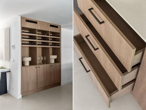 Los tonos tierra, los acabados en negro mate, la madera de roble ahumado y los azulejos artesanales zellige crean un ambiente cálido y sofisticado. Al entrar, una escalera distintiva de madera y metal conecta las zonas abiertas de cocina, comedor y salón con el espacio exterior privado y la piscina, fusionando perfectamente el interior con el exterior.