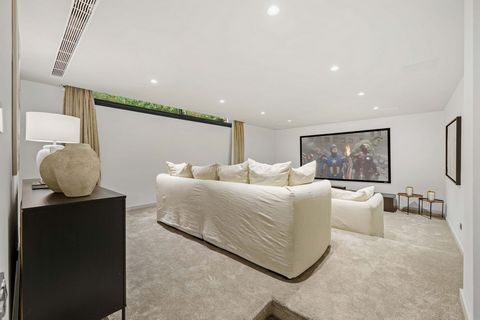 Each bedroom has been designed with sophistication and warmth, featuring fitted wardrobes and elegant en-suite bathrooms. Additional amenities include a private cinema and entertainment room, a fully equipped home gym, and a secure private garage.