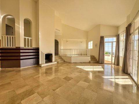 Located on a 961 m2 plot with a total built area of 565 m2, this property enjoys breathtaking panoramic views stretching from the surrounding hills to the golf course and the Mediterranean Sea.