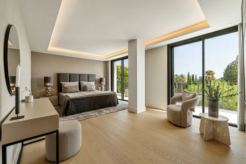 Modernised in 2025, the 734 m² interior features full-height glazing, vaulted ceilings, and a contemporary open-plan layout. The spacious living and dining area flows around a striking designer kitchen with a central island, creating a perfect space for both everyday living and entertaining. Five luxurious bedroom suites offer refined accommodation, including a panoramic principal suite with its own private terrace and walk-through dressing room.