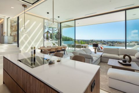 Set within a development of 5 brand new luxury villas, This villa enjoys an elevated position within the prestigious Golf Valley of Nueva Andalucia, providing scenic mountain and sea views. Designed with a contemporary touch, the villa has been impeccably set to face the magnificent panoramic views towards the Mediterranean Sea, all the way to the African coastline. A seamless flow between exterior and interior areas, set the stage for the quintessential easy going Mediterranean lifestyle. Surrounded by luscious tropical gardens, the large infinity swimming pool receives all the spotlight, giving the home an oasis feeling.