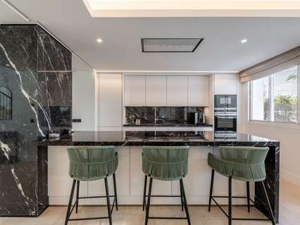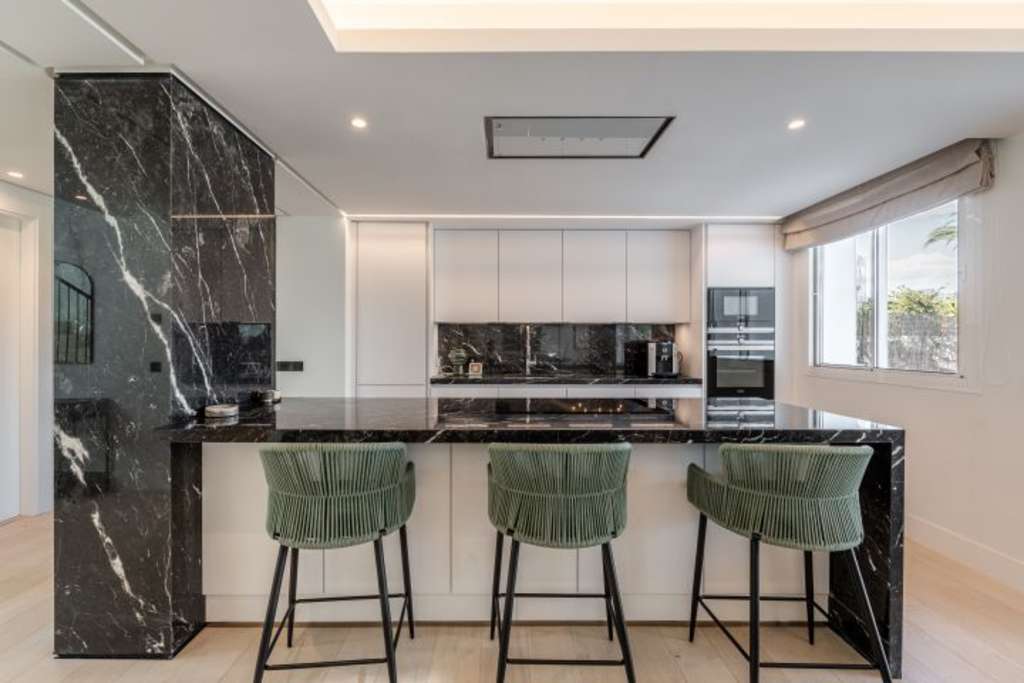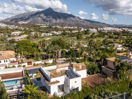 Es una villa de lujo recientemente renovada, situada en el exclusivo barrio de Las Brisas Golf en Nueva Andalucía, Marbella. Con una superficie de 802 m², esta propiedad de cinco dormitorios y cinco baños es el epítome de la vida contemporánea, ofreciendo tanto privacidad como acceso cercano a las mejores comodidades de la zona. La villa cuenta con garaje cubierto para dos coches, trastero, lavadero, y vistas impresionantes a la montaña de La Concha y al campo de golf. Además, la propiedad está equipada con paneles solares para garantizar la eficiencia energética y mantener bajas las facturas de electricidad.EXTERIORESEl exterior de la villa destaca por su jardín privado meticulosamente cuidado, que rodea una piscina climatizada y una zona chill-out perfecta para relajarse y disfrutar del clima mediterráneo. La villa también dispone de amplias terrazas, tanto en la planta superior como en la azotea, que ofrecen vistas panorámicas de 360 grados del campo de golf Las Brisas y las montañas circundantes. En la azotea se encuentra un jacuzzi y una zona de barbacoa, ideales para disfrutar de momentos de ocio al aire libre.INTERIORESEl interior de la villa está diseñado con materiales de alta gama, como suelos de mármol y una distribución abierta que favorece la luminosidad natural. En la planta baja se encuentran tres de los dormitorios en suite, una moderna cocina abierta de un fabricante alemán, un comedor totalmente amueblado, y una sala de estar con chimenea que conecta directamente con el jardín y la piscina. También dispone de un aseo de invitados y una sauna privada. En la planta superior se encuentran dos dormitorios más, incluido el dormitorio principal, que tiene acceso a una terraza con vistas espectaculares. Todos los dormitorios cuentan con baños en suite y calefacción por suelo radiante para garantizar el confort durante todo el año.