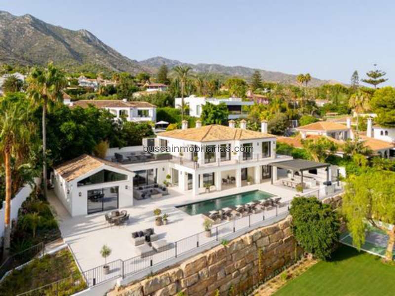 Presentamos Villa Rocío, una impresionante residencia de estilo andaluz completamente renovada en 2025, ubicada en la prestigiosa zona de Rocío de Nagüeles, en la Milla de Oro de Marbella. Situada en una parcela orientada al sur de 1.965 m² bajo La Concha, la villa ofrece espectaculares vistas al Mediterráneo y abundante luz natural en sus 734 m² de espacio habitable.