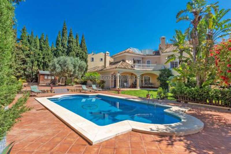 Beautiful villa in the Xarblanca area, close to all amenities and a 5-minute drive from the center of Marbella. It comprises a 1,100 m2 plot with a very large garden surrounded by plants and palm trees throughout the house, and a large swimming pool. The house itself is 412 m2 and is distributed as follows: