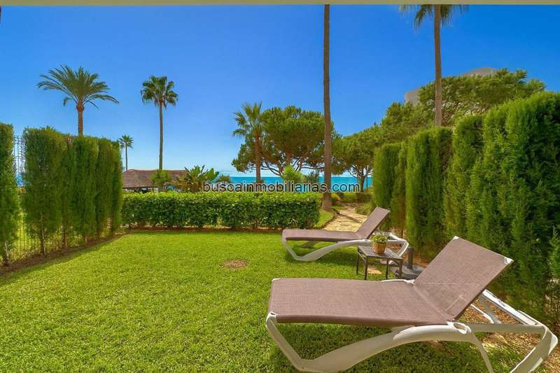 Desde el salón se accede directamente a la terraza privada, luego al jardín privado y de allí directamente a la piscina. A tan solo 50 metros más se encuentra la playa. El apartamento está orientado al mar, ofreciendo vistas abiertas y un ambiente inmejorable.