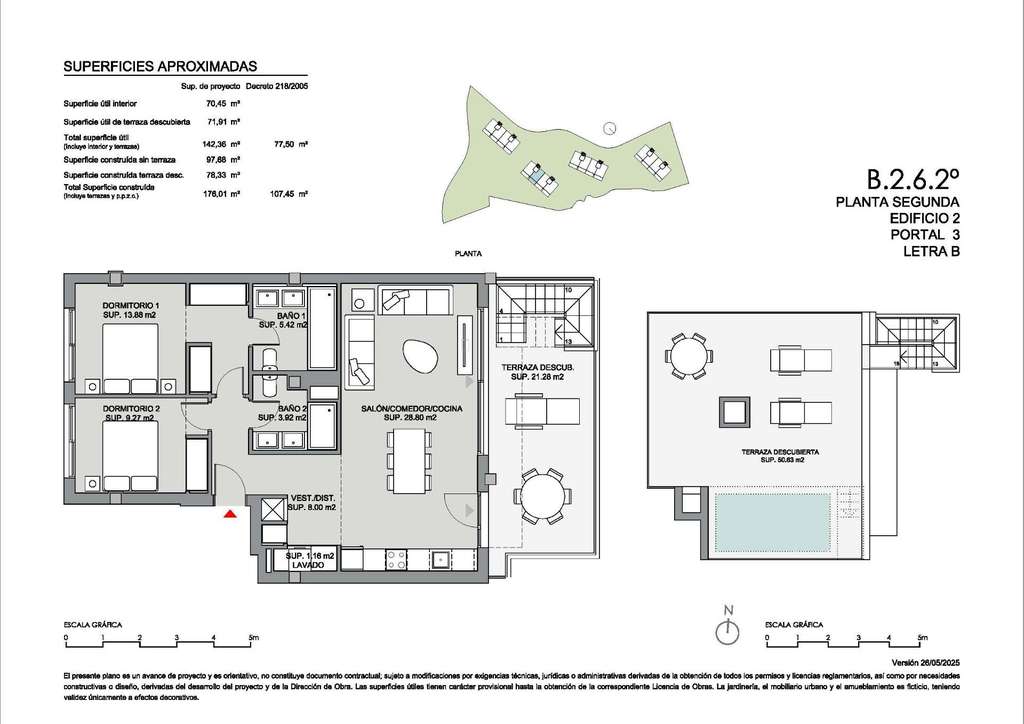 La comunidad cerrada consta de solo 48 apartamentos contemporáneos distribuidos en cuatro edificios de baja altura con planta baja, primera y segunda planta. Las viviendas están disponibles con 2 o 3 dormitorios y se benefician de una codiciada orientación sureste, lo que maximiza la luz natural y las vistas abiertas. Las propiedades de la planta baja y la planta intermedia cuentan con grandes terrazas o áticos con soláriums privados. Algunas plantas bajas y áticos seleccionados tienen la opción de añadir una piscina privada, creando un espacio exterior verdaderamente exclusivo.