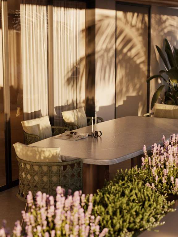 Cada vivienda ha sido cuidadosamente diseñada para potenciar la luz, el espacio y el confort. Las amplias distribuciones diáfanas conectan a la perfección con grandes terrazas, ideales para relajarse o recibir invitados. Los materiales de primera calidad, las cocinas totalmente amuebladas y equipadas y la calefacción por suelo radiante en todas las habitaciones (con calefacción eléctrica en los baños) crean un ambiente cálido y acogedor durante todo el año.