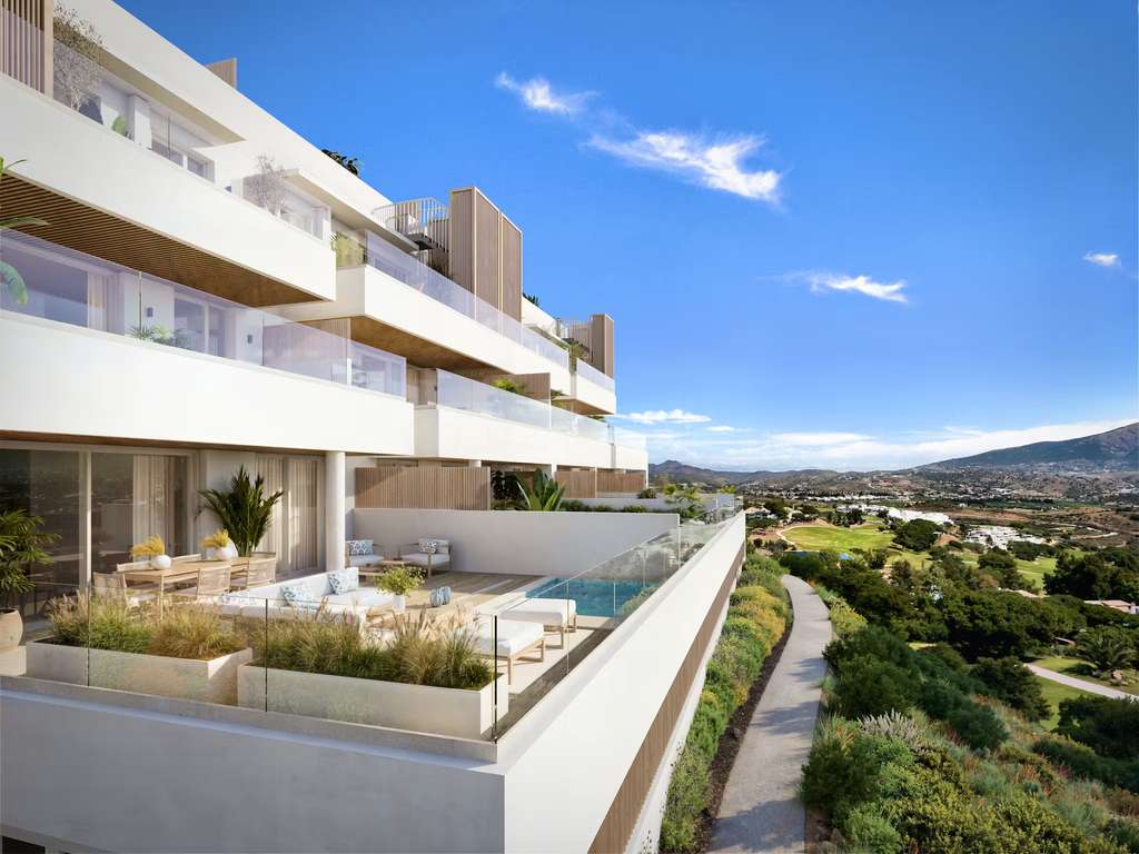 Ubicado en la hermosa localidad de Mijas, este exclusivo residencial ofrece un total de 48 viviendas diseñadas para disfrutar de la vida en la costa. Las opciones de tipología incluyen apartamentos, plantas bajas y áticos, cada uno cuidadosamente diseñado para maximizar el confort y la funcionalidad. Las propiedades cuentan con impresionantes vistas al mar, permitiendo a los residentes disfrutar de la belleza del entorno desde la comodidad de su hogar. La proximidad al aeropuerto, a solo 38 km, facilita el acceso y la movilidad, convirtiendo a este residencial en una opción ideal tanto para residencia permanente como para escapadas vacacionales.EXTERIORESLos exteriores de este residencial en Mijas están diseñados para complementar el entorno natural y ofrecer un espacio de relajación y disfrute al aire libre. Las viviendas en planta baja cuentan con jardines privados, perfectos para quienes buscan un contacto directo con la naturaleza. Además, todas las propiedades disponen de amplias terrazas, ideales para disfrutar de las vistas al mar y del clima mediterráneo. Los áticos, por su parte, ofrecen solariums privados, proporcionando un espacio adicional para el ocio y el descanso al aire libre.INTERIORESEl interior de las viviendas está diseñado con un enfoque en la calidad y el confort. Los apartamentos, plantas bajas y áticos ofrecen opciones de 2 y 3 dormitorios, todos con 2 baños, asegurando espacio suficiente para familias y visitantes. Las viviendas están equipadas con suelos de gres porcelánico, que aportan un toque moderno y elegante. Además, cuentan con calefacción por suelo radiante, proporcionando un ambiente cálido y acogedor durante los meses más fríos. La inclusión de electrodomésticos modernos y un sistema de domótica avanzada garantiza una experiencia de vida cómoda y eficiente. Los armarios empotrados ofrecen soluciones de almacenamiento prácticas y estéticas.ZONAS COMUNESEl residencial ofrece una variedad de zonas comunes diseñadas para el disfrute y bienestar de sus residentes. Entre ellas, se encuentran amplias áreas ajardinadas que proporcionan un entorno verde y tranquilo. Los residentes pueden mantenerse activos y saludables gracias al gimnasio comunitario, equipado con instalaciones modernas. Además, la piscina comunitaria ofrece un espacio refrescante para relajarse y socializar, convirtiéndose en el lugar perfecto para disfrutar del clima soleado de Mijas.