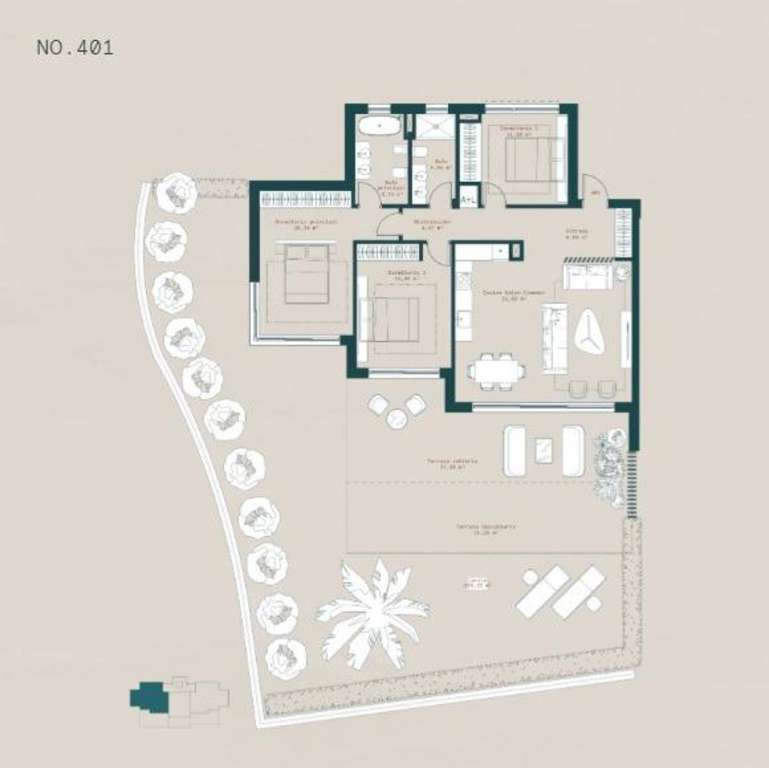 Apartamentos: Elegantes unidades de 2 ó 3 dormitorios, desde residencias en planta baja con jardín hasta opciones en planta intermedia con amplias terrazas y áticos dúplex que presumen de amplias terrazas abiertas.