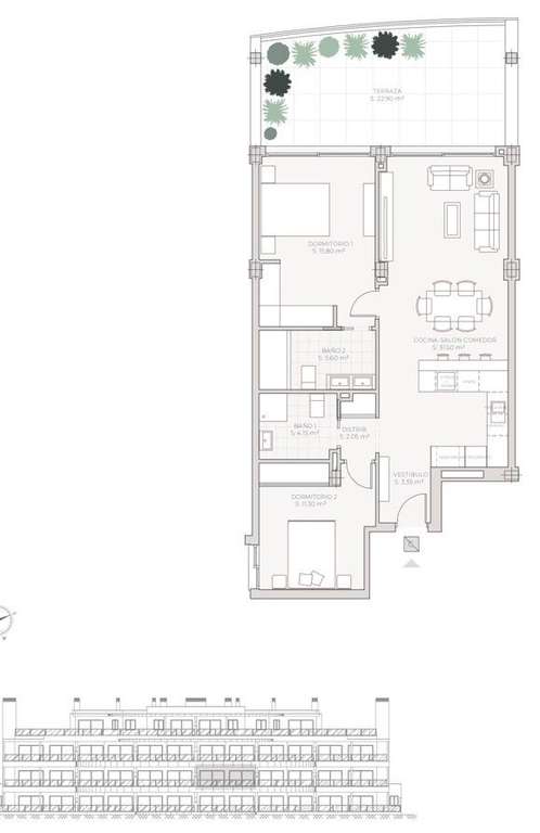 Apartamentos de nueva construcción con vistas al mar en Las Lagunas de Mijas Exclusivo complejo residencial con vistas panorámicas al mar Descubra esta excepcional promoción residencial de nueva construcción situada en Las Lagunas de Mijas, en una colina elevada junto al club de golf Cerrado del Águila. El proyecto consta de 59 viviendas modernas distribuidas en cuatro edificios, con apartamentos de 1, 2 o 3 dormitorios, todos ellos orientados hacia el mar Mediterráneo. Gracias a esta privilegiada ubicación, casi todas las viviendas disfrutan de vistas despejadas al mar, lo que convierte cada propiedad en un auténtico mirador sobre la costa. Ubicación privilegiada cerca del golf, la playa y los servicios Las Lagunas de Mijas es una zona animada y bien comunicada que ofrece un equilibrio perfecto entre la vida costera y las comodidades del día a día. La urbanización está situada a solo 3 km de la playa y a pocos minutos de Fuengirola, donde encontrará una amplia oferta de restaurantes, centros comerciales, colegios internacionales e instalaciones de ocio. El club de golf Cerrado del Águila está justo al lado, lo que lo convierte en un lugar ideal para los amantes del golf. Viviendas amplias con privacidad y luz natural Todos los edificios están situados por encima de las calles de acceso, lo que garantiza una excelente privacidad y evita la visibilidad del interior desde el exterior. Los apartamentos han sido diseñados para maximizar la luz natural, las vistas al mar y el confort, con materiales cuidadosamente seleccionados que ofrecen un alto aislamiento térmico y acústico. Zonas comunes estilo resort Situado en una parcela de 20 000 m2 con solo 3000 m2 construidos, el complejo ofrece amplias zonas comunes ajardinadas que se integran de forma natural en el entorno. Los residentes pueden disfrutar de una piscina infinita con acceso a la playa, un gimnasio totalmente equipado y tranquilos senderos rodeados de vegetación, todo ello con impresionantes vistas al mar. Especificaciones de alta calidad y características de hogar inteligente Cada vivienda incluye una plaza de aparcamiento privada y un trastero. Las cocinas están totalmente equipadas con electrodomésticos Siemens, mientras que los baños cuentan con muebles modernos y mamparas de ducha. La puerta de entrada blindada proporciona una seguridad adicional. La comodidad está garantizada durante todo el año gracias a un sistema aerotérmico integrado para el agua caliente sanitaria y la calefacción por suelo radiante, combinado con aire acondicionado centralizado por conductos. La zonificación del termostato permite controlar la temperatura de forma independiente en cada habitación. La carpintería exterior de aluminio incluye tecnología de rotura de puente térmico, con puertas elevables y correderas en el salón y ventanas oscilobatientes en el resto de la vivienda. Las persianas eléctricas se controlan de forma domótica. Un completo sistema domótico ofrece conectividad móvil para controlar la iluminación, los sistemas de climatización, la calefacción por suelo radiante, el funcionamiento de las persianas y las funciones de seguridad, como la detección de inundaciones e incendios. Distancias clave: Playa 3 km Cerrado del Águila Golf 0,5 km Centro de Fuengirola 4 km Aeropuerto de Málaga 28 km Puerto Banús 40 km Ciudad de Málaga 30 km Su nueva casa en la Costa del Sol Esta exclusiva promoción en Las Lagunas de Mijas combina un diseño moderno, vistas al mar, proximidad al golf y servicios de estilo resort en una de las zonas más atractivas de la Costa del Sol. Póngase en contacto con nosotros hoy mismo para concertar una visita y asegurarse su nueva casa junto al mar.