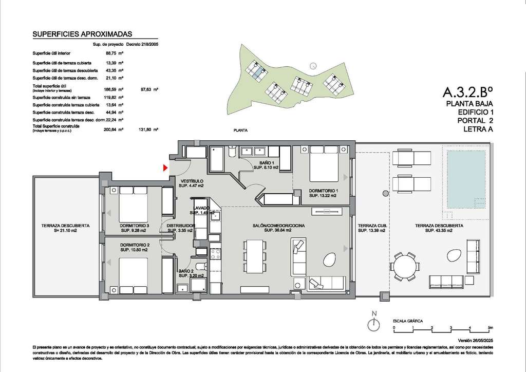 La comunidad cerrada consta de solo 48 apartamentos contemporáneos distribuidos en cuatro edificios de baja altura con planta baja, primera y segunda planta. Las viviendas están disponibles con 2 o 3 dormitorios y se benefician de una codiciada orientación sureste, lo que maximiza la luz natural y las vistas abiertas. Las propiedades de la planta baja y la planta intermedia cuentan con grandes terrazas o áticos con soláriums privados. Algunas plantas bajas y áticos seleccionados tienen la opción de añadir una piscina privada, creando un espacio exterior verdaderamente exclusivo.
