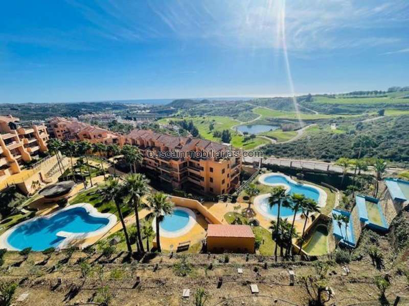 El piso dispone de 2 amplios dormitorios con armarios empotrados, incluyendo un dormitorio principal con baño en suite, perfecto para disfrutar de privacidad y confort. La joya de la vivienda es su terraza de 22 m2, ideal para relajarte mientras contemplas el mar y el verde del campo de golf.