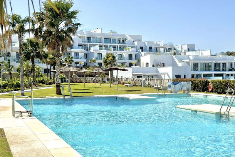 Este moderno apartamento de lujo ofrece: amplio salón-comedor con una gran cocina abierta moderna, blanca y equipada con acabados de alto brillo. Incluye horno, vitrocerámica, campana extractora, frigorífico-congelador y microondas. 3 amplios dormitorios dobles con armarios empotrados, el principal con puertas que dan a la terraza, vestidor y un lujoso baño en suite con ducha. Además, hay un segundo baño familiar con ducha. Terraza cubierta (ahora con cortinas de cristal) y jardín privado con vistas a la urbanización, con vistas a las montañas y vistas parciales al mar. Aire acondicionado frío/calor, plaza de aparcamiento privada y trastero. Los interiores presentan un hermoso diseño atemporal, con acabados de alta calidad y paletas de colores neutros.