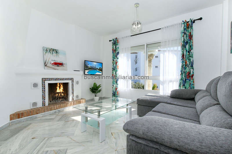 A tan sólo 300 metros de la playa. Consta de 3 dormitorios, 2 baños reformados, salón con dos terrazas y chimenea, cocina totalmente equipada con vistas al mar, enorme solárium con vistas panorámicas. Esta propiedad tiene mucho espacio y está en una urbanización privada con un estilo andalusí único (complejo muy bien cuidado), con una piscina comunitaria rodeada de hermosos jardines con una amplia variedad de plantas exóticas.