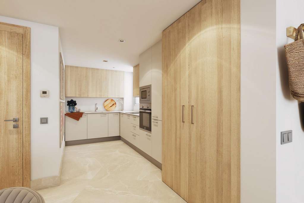 La orientación sureste-suroeste garantiza la luz solar durante todo el día, mientras que los grandes ventanales conectan a la perfección el salón con la terraza, creando espacios luminosos y aireados. Cada apartamento incluye: