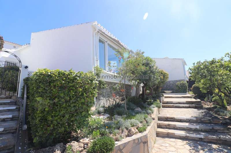 Uno de los mayores atractivos es su gran terraza exterior, perfecta para relajarse y disfrutar de unas vistas panorámicas espectaculares al mar. Además, la casa cuenta con un solárium privado que permite aprovechar al máximo el sol durante todo el día.