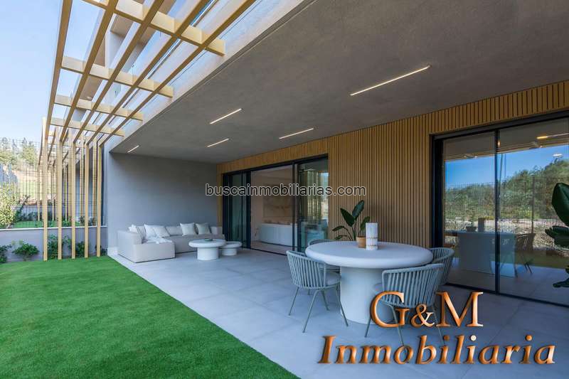 VIVIENDAS DE 3 DORMITORIOS: PLANTA ENTRADA: 3 dormitorios amplios, el principal muy grande con zona de vestidor y 2 baños completos (uno de ellos en suite). PLANTA BAJA: aseo, enorme salón-comedor con cocina abierta, lavadero. Tanto desde el salón como por la cocina tenemos acceso a la zona privada de terraza y jardín.