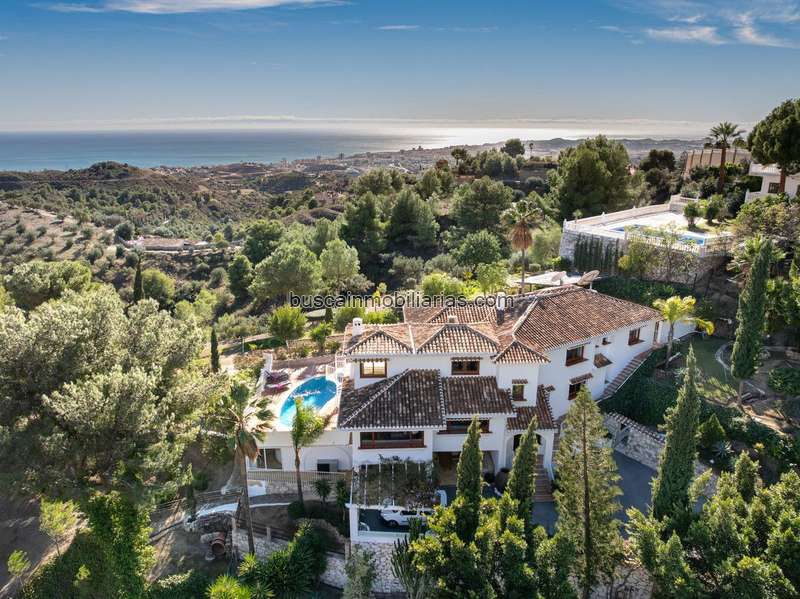 Excepcional Villa en Venta en Mijas – Ubicación Privilegiada, Privacidad y Bonitas VistasSituada a solo 1 km del encantador pueblo de Mijas, esta impresionante villa disfruta de una ubicación excelente dentro de una urbanización consolidada y muy tranquila. Ubicada al final de un callejón sin salida y con entrada privada, la propiedad ofrece total tranquilidad, privacidad y bonitas vistas al mar y a la montaña.Asentada sobre una amplia parcela, la villa es espaciosa y llena de carácter, rodeada de árboles maduros, varias zonas de estar al aire libre y espacios exteriores muy cuidados. La vivienda principal se distribuye en dos plantas:Planta Principal:Una distribución amplia y acogedora que incluye dos cómodos salones: uno de ellos con comedor y una pequeña barra, y otro con chimenea. Además, dispone de un comedor adicional que comunica directamente con la zona de la piscina y la terraza, creando una perfecta conexión interior–exterior ideal para el entretenimiento. Una gran cocina independiente completa esta planta.Planta Superior:En esta planta se encuentran cuatro amplios dormitorios, todos con baño en suite, ofreciendo comodidad y privacidad tanto para la familia como para los invitados. También cuenta con una sala de estar adicional, perfecta como zona de descanso o salón familiar.La propiedad está equipada con calefacción central en toda la villa y paneles solares para el agua caliente, garantizando confort y eficiencia durante todo el año.Apartamento Independiente:En la planta inferior se encuentra un apartamento independiente con dormitorio, baño y una sala destinada a sauna, ideal para recibir invitados o familiares.Zonas Exteriores:La amplia parcela ofrece una variedad de encantadores espacios, incluyendo una piscina, zona de barbacoa, terrazas cubiertas y espacio de aparcamiento. Un camino conduce a la parte alta del terreno, donde se encuentran varias áreas de descanso rodeadas de árboles maduros, que aportan un ambiente sereno y agradables vistas.Villa - Chalet, Mijas, Costa del Sol.5 Dormitorios, 5 Baños, Construidos 569 m2, Jardin/Terreno 3293 m2.Posición : Urbanización.Orientación : Sur.Piscina : Privada.Climatización : Aire Acondicionado, Calefacción Central., Chimenea.Vistas : Mar, Montaña.Caracteristicas : Armarios Empotrados, Terraza Privada, Aprtmnt. Huéspedes, Baño En-Suite.Muebles : Amueblada.Cocina : Equipada.Jardin : Privado.Aparcamiento : Privado.Servicios Públicos : Paneles Solares Térmicas.Categoría : Lujo, Reventa.