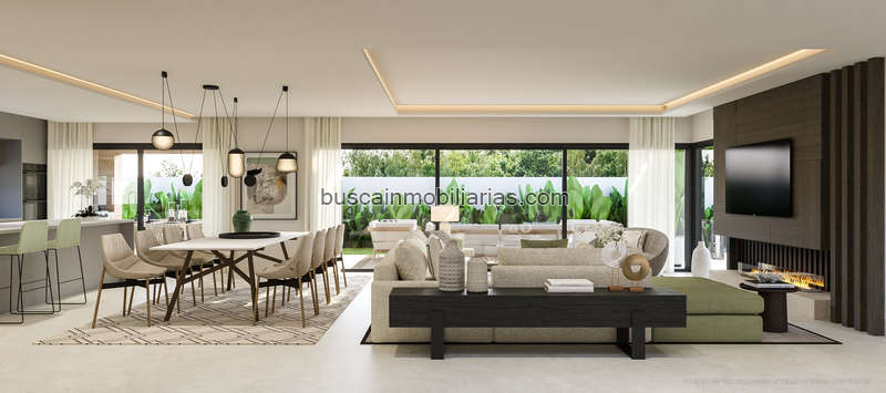 La cocina, de concepto abierto, se integra perfectamente con el espacioso salón, creando un ambiente ideal para disfrutar en familia o recibir amigos. Equipada con electrodomésticos de alta gama y acabados de lujo, es un lugar perfecto tanto para cocinar como para compartir momentos especiales. La villa también dispone de un sótano que ofrece grandes posibilidades de personalización, ideal para un gimnasio o un cine.
