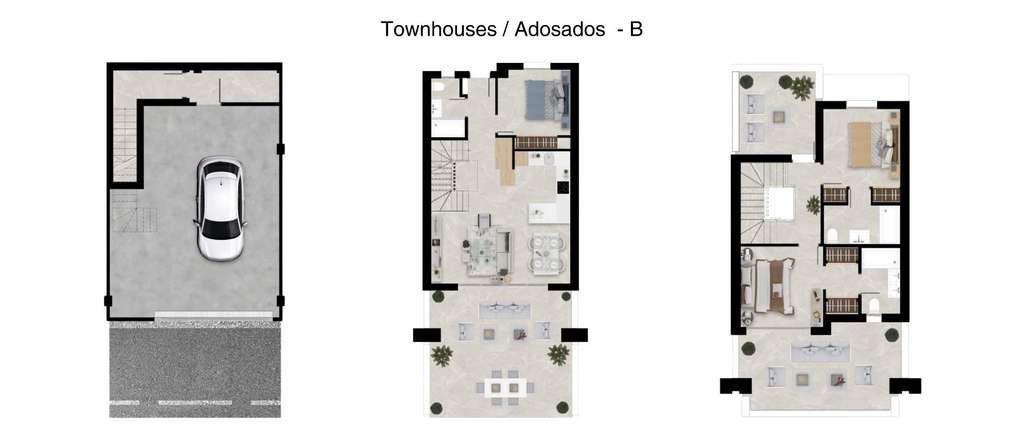 Cada adosado ofrece una distribución contemporánea y funcional con: