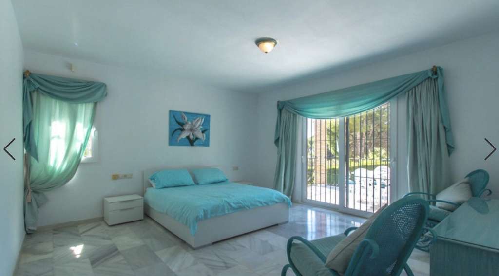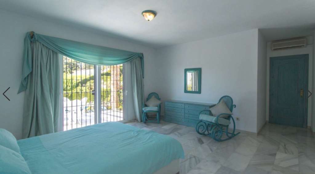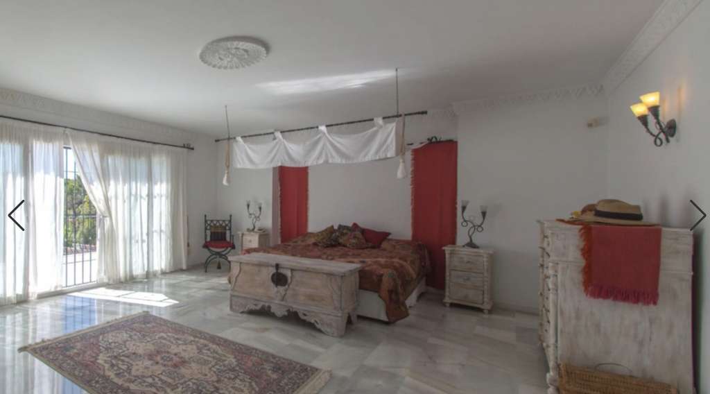 PLANTA ALTA : Compuesta por el amplísimo dormitorio principal con acceso a la terraza soleada con vistas a las montañas y al mar; más amplio vestidor y baño con jacuzzi y ducha.