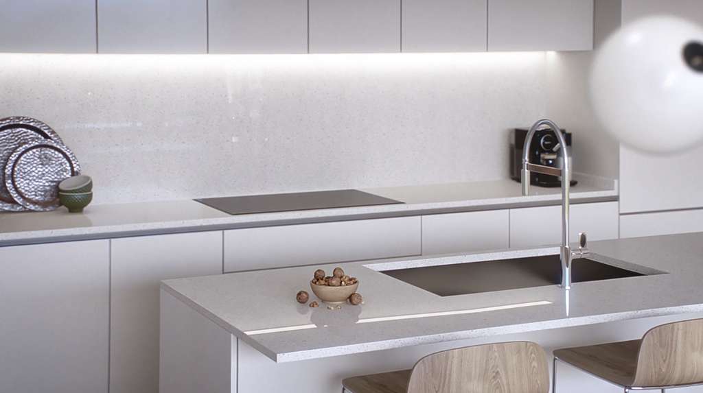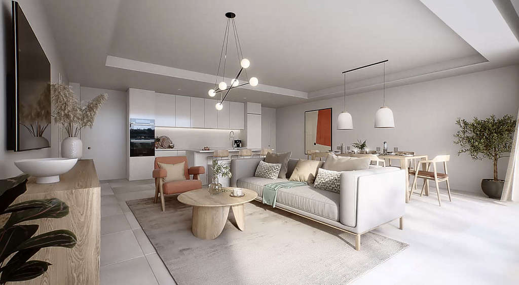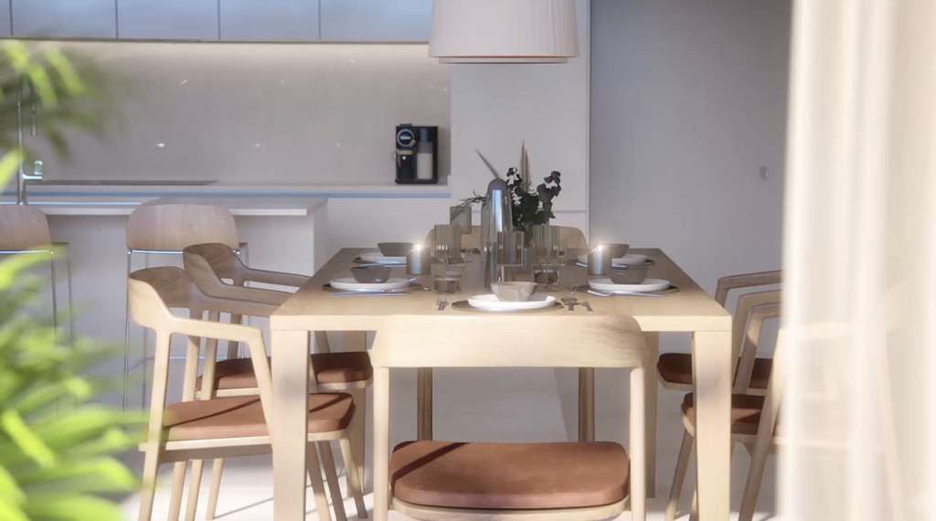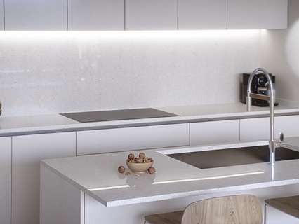 La cocina ha sido pensada como una unidad indivisible del salón consiguiendo unosamplios espacios donde pasar gran parte del día. Las calidades están a la altura de unproyecto como éste: encimeras de cuarzo, electrodomésticos integrables y luces LED integradasque aportan sofisticación y calidez. En los baños se ha optado por la elegancia del gran formato porcelánico, reflejo y garantía de diseño.Todo ello sin olvidar la funcionalidad y ofreciendo siempre una propuesta de bajo consumo,atendiendo a los criterios de sostenibilidad, practicidad y confort.