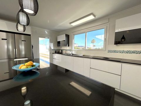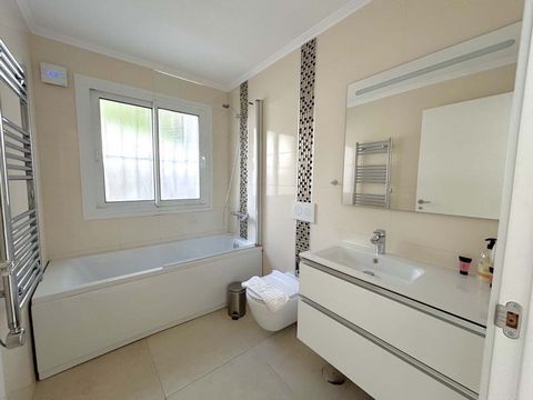The spacious villa features six bedrooms, each with an ensuite bathroom, a fully equipped kitchen, and a separate guest apartment with its own kitchen, bedroom, bathroom, and living room.