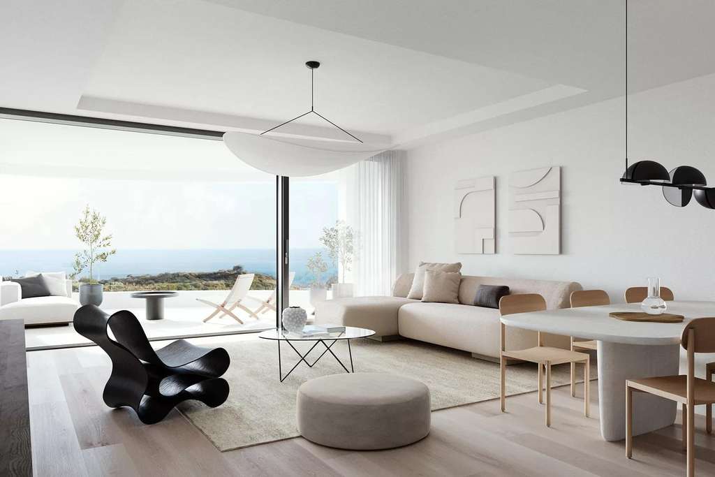 Exclusivo proyecto de obra nueva de adosados y pareados cerca de Mijas con un elegante diseño escandinavo que combina armoniosamente con la naturaleza circundante. La arquitectura de las propiedades sigue a la perfección las formas ondulantes de las olas.