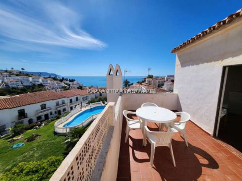Apartamento dúplex en Nerja, con 2 dormitorios, en la zona del Parador, con piscina comunitaria, terrazas con vistas al mar, céntrico y a 5 minutos caminando a la playa.