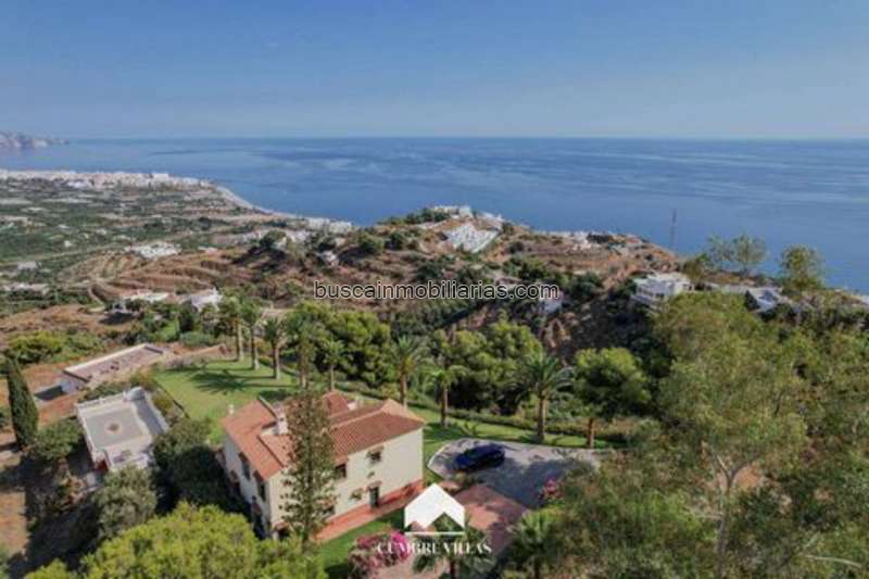 Cumbre Villas presenta esta villa de estilo hacienda en venta en Nerja, situada en una ubicación privada sobre una parcela de 9.000 m² con hermosas vistas al mar y a la montaña, y a menos de 10 minutos de la playa y del centro. La propiedad cuenta con un largo camino de entrada privado, un garaje doble, amplios interiores y un gran jardín tropical con piscina. La planta baja incluye una amplia cocina con comedor y un salón conectado con un porche cubierto y una terraza abierta con barbacoa de obra. En esta planta también hay dos dormitorios, un baño y un lavadero. La primera planta ofrece tres dormitorios adicionales, dos de ellos con baño en suite. La vivienda dispone de aire acondicionado y chimenea. La casa dispone de varias terrazas y se puede caminar alrededor de toda la vivienda, lo que conecta perfectamente los espacios exteriores. La propiedad está rodeada de jardines muy cuidados con árboles frutales tropicales y palmeras. Contacte con Cumbre Villas para más información o para concertar una visita.