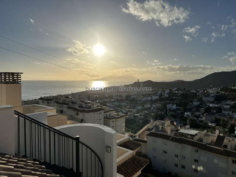 Se alquila magnífico ático en La Cala del Moral, una vivienda luminosa y totalmente renovada que destaca por sus espectaculares vistas panorámicas a la bahía de Málaga.