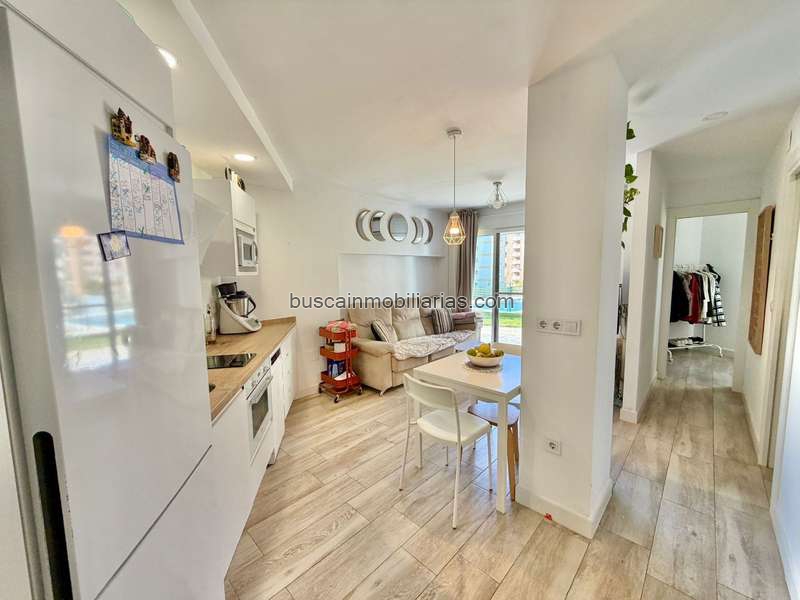 AGNIFICO PISO TOTALMENTE REFORMADO. Vivienda totalmente reformada, originalmente de 1 dormitorio y actualmente redistribuida en 3, dos habitaciones sin ventanas. Optimizando al máximo cada espacio. Se vende prácticamente amueblada y dispone de 1 baño completo, cocina totalmente equipada, aire acondicionado frío/calor, carpintería exterior de PVC con doble acristalamiento, puerta de entrada blindada y elegantes puertas interiores en color blanco. La propiedad cuenta con acceso directo a jardín comunitario con piscina, ofreciendo un entorno agradable y funcional. Ubicada en una zona estratégica, con excelente conexión a autovía, cercanía a transporte público y a tan solo 700 metros aproximados de la playa y comercios . El edificio dispone de acceso adaptado para personas con movilidad reducida. Una oportunidad ideal tanto para residencia habitual como para inversión.