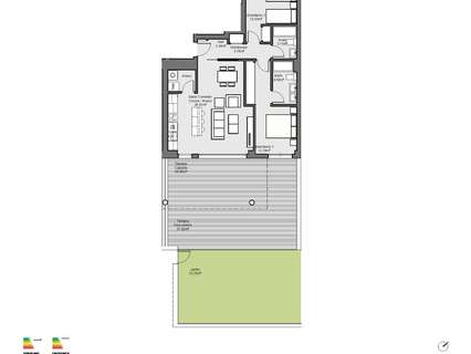 Exclusivas áreas comunes para compartir, trasteros y plazas de parking. Viviendas perfectamente equipadas todas las comodidades que pueda necesitar: cocinas amuebladas,aire acondicionado con segmentación tipo Airzone,aerotermia,y persianas motorizadas.