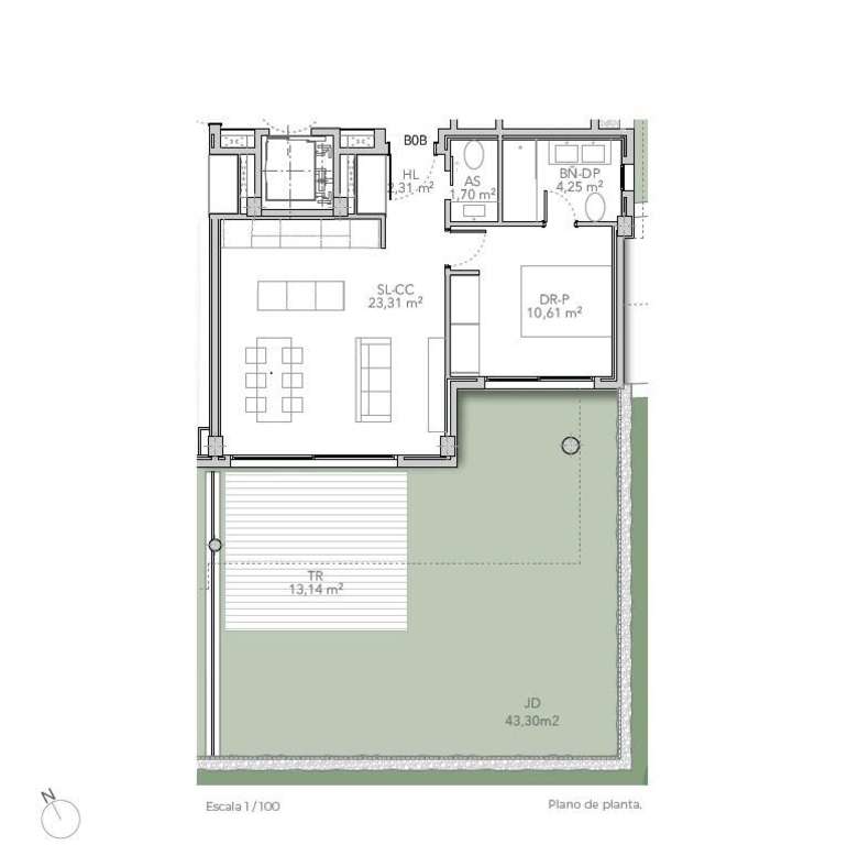 Los apartamentos de planta baja dispone de jardín privado, primera y segunda planta dispone de agradables terrazas y el nivel superior de áticos con solarium privado y piscina opcional.