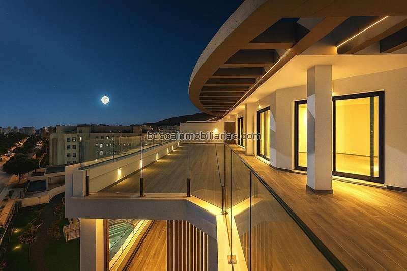La vivienda ofrece 270 m2 construidos en total, de los cuales 106 m2 corresponden al interior y 164 m2 a sus amplias terrazas privadas, pensadas para disfrutar del clima y de las vistas abiertas al mar y a la bahía de Málaga.